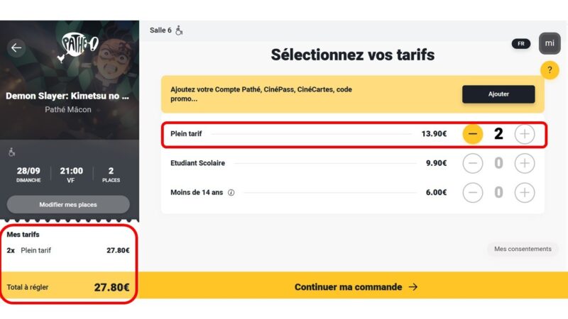 前日にこちらのサイト(Pathé Mâcon 公式ページ)からオンライン予約。