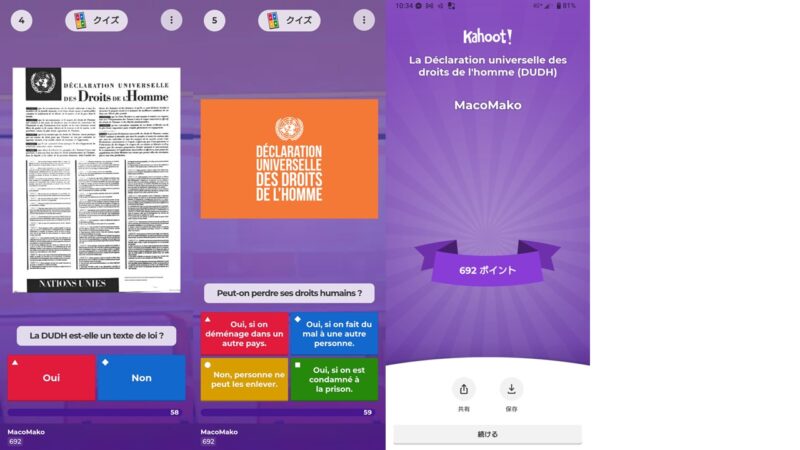 ここで、Chalon-sur-Saône でも行った Kahoot での復習クイズです。