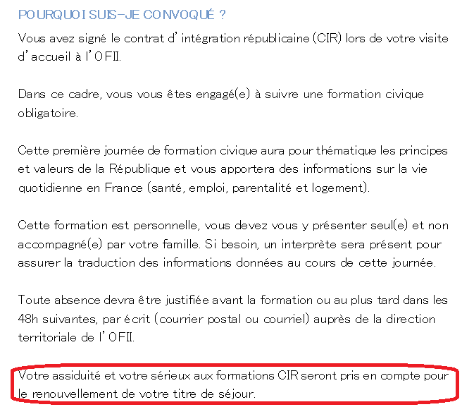 「Formation Civique、これは滞在許可更新には関係ありません」と断言していたのに…。