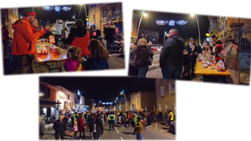 お目当ては、Vin chaud(ホットワイン)やビール、焼き栗やチョコレート、この日のために作られた食事など、地元の協会が出す飲み物や軽食、お菓子の屋台が並びます。小さなコンサートもあり、サンタさんと一緒に写真が撮れたりと、子どもも大人も楽しめる催しがたくさん。