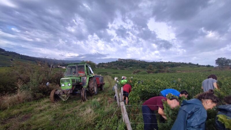 それでも、Vendangesは雨でも止まず、曇りや晴れ間を縫いながら、黙々と収穫を続けます。