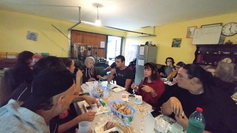ランチタイムの様子。それぞれ持ち寄って食べます。